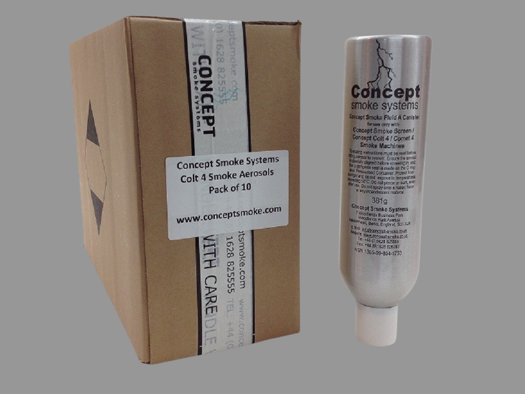 Box of 10 Colt 4 Aerosols. The resulting smoke from the Colt 4 smoke canister is very persistent. The canister is a one-piece aluminium vessel, eliminating any chances of rust occurring on the seam and prolonging the life of the aerosol.