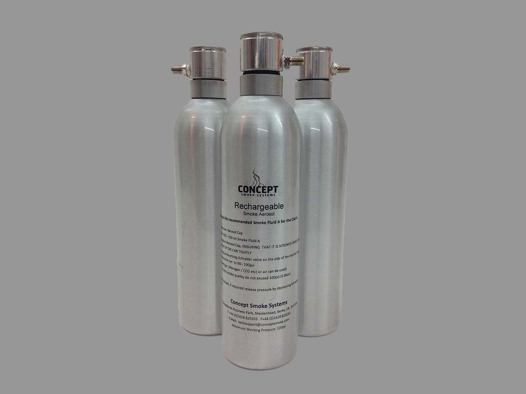 Refillable smoke cannister for Artem and Colt series smoke machines. Unscrew cap. Fill with Smoke fluid of choice, refit cap and pressurise with hand pump.