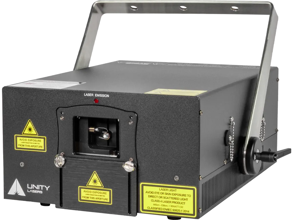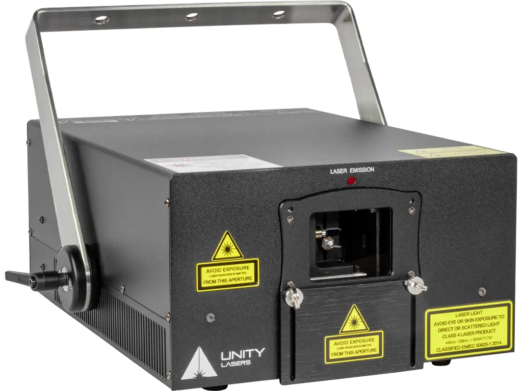 The new Unity RAW 10 FB4 lasers were designed for the emerging professional who needs to interface lasers into more advanced multimedia setups. Ideal for clubs, DJs, and medium sized indoor venues (up to 5,000 people), these lasers integrate our industry-leading FB4 control hardware into the devices. Providing you with the same control infrastructure the professionals use, and a FREE copy of our powerful QuickShow software and MoboLaser app (for Apple and Android) to design, create, and control with. Using RAW 10 FB4, you can make any type of laser display you can imagine (beam shows, graphics, text, logos, or mapping sequences) and control your show content however you desire – be it from a lighting console, PC, or in stand-alone “auto” mode. Patch into other lighting networks as well, for seamless control of your lasers, lighting, and other FX.